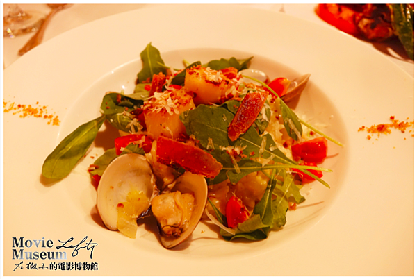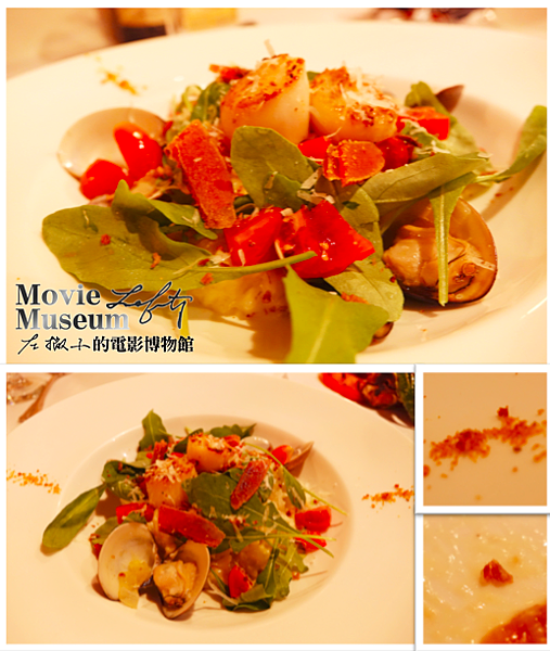 還有很多細節喔,灑在盤邊緣的是烏魚子粉,在燉飯中也有鯷魚碎屑,香味跟口感都是在品嚐燉飯時的一個驚喜。